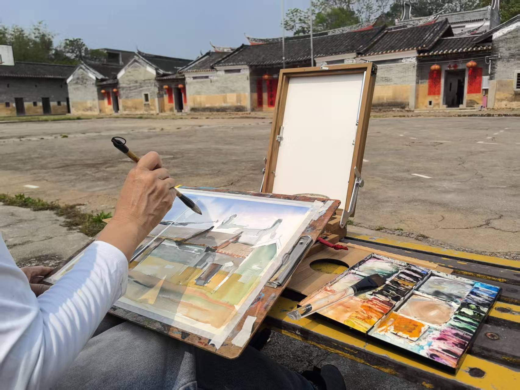 采风队先后走进百果里果旅综合体、鹤湖围、石河奇观、九重远眺、十三坝驿站、千年古榕驿站、香溪堡、长滩村等特色点位,以镜头捕捉田园风光、古建韵味与自然灵秀,用画笔勾勒人文与生态之美,真切感受了龙门乡村的发展变化和浓厚的文化底蕴,见证了美好的生态和村民们幸福的生活,创作了大量鲜活精美的艺术作品。青年油画家易玉嵩表示,惠州不仅是生活的地方,更是不断给予他创作灵感的土地,希望通过艺术创作,为惠州发出更多声音,让更多人认识和了解惠州的美。
